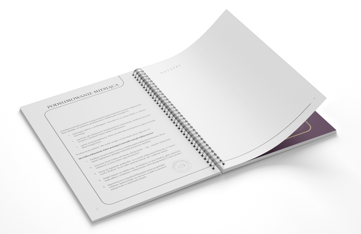 - Przestrzeń na notatki i refleksję, aby zaplanować kolejny miesiąc jeszcze skuteczniej.