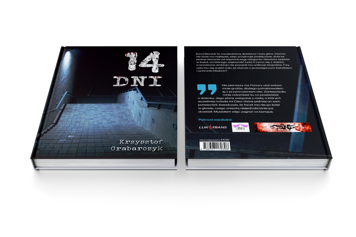 Przy projekcie książki „14 Dni” autor Krzysztof Grabarczyk zwrócił się do mnie z prośbą o stworzenie projektu okładki, która oddałaby mroczny klimat kryminału. To powieść pełna napięcia, tajemnic i trudnych emocji, dlatego zadaniem było stworzenie wizualnej oprawy, która wprowadzi czytelnika w atmosferę książki już od pierwszego spojrzenia.