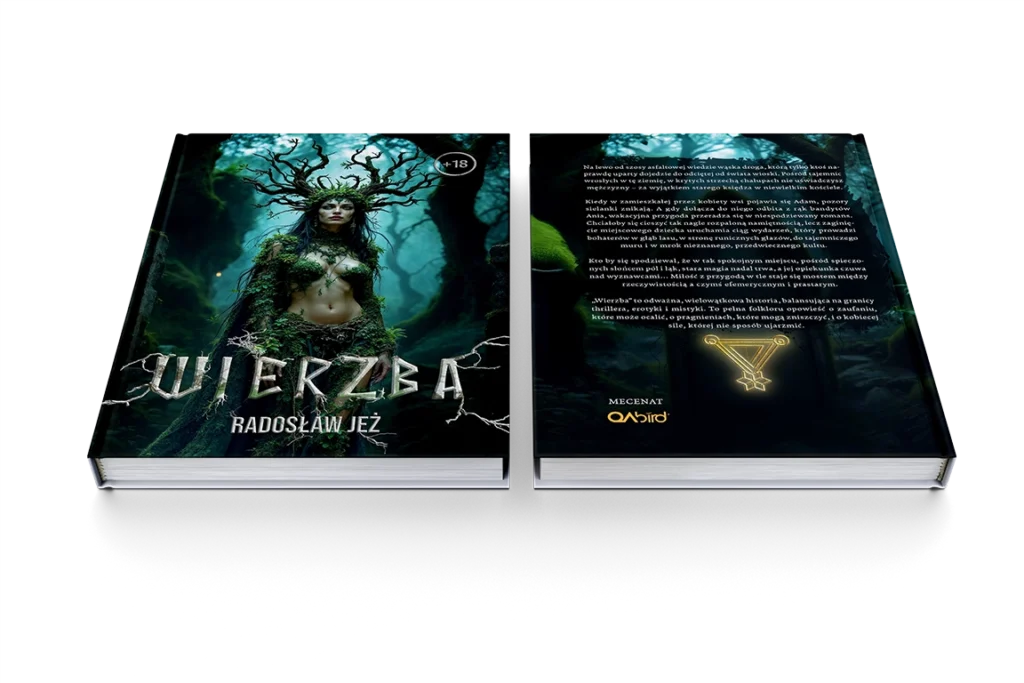 Gotowy projekt doskonale oddaje atmosferę książki balansującej na pograniczu thrillera, erotyki i mistyki. Mocna grafika, dopracowana typografia i szczegóły, które mają znaczenie – wszystko to sprawia, że „Wierzba” już na pierwszy rzut oka wyróżnia się na tle innych książek z tego gatunku. To okładka, która nie tylko ilustruje treść, ale też współtworzy narrację.